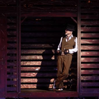 La Ópera de los Tres centavos es una obra maestra del teatro moderno que lleva la acepción de ópera cuando en realidad es teatro musical. Se trata de una crítica social que ha sido objeto de numerosos análisis musicales y de varias versiones ya sea dentro del jazz, del Foxtrot o de otros géneros musicales. Siendo su música sencilla y amena, el texto de Brecht nos habla de la clase baja, de delincuentes y prostitutas. La calificaríamos también como una sátira mordaz sobre la corrupción y desigualdad social y que a pesar de todo nos resulta evocadora. La interpretación presenciada en el teatro Arriaga habría que contemplarla desde el punto de vista actoral, es decir teatral. No en vano los intérpretes completaron una actuación meritoria con gran naturalidad y entrega. En el ámbito musical, en concreto vocal, faltó musicalidad a la traducción y las voces todas ellas teatrales, utilizaron el mini micrófono con lo que ya está todo dicho. Nos gustó la escenografía confeccionada en madera, eficaz en su sencillez y nos gustó la labor actoral de los siete intervinientes con el lógico destacar de Coque Malla encarnando a Macbeath. Así mismo, sería injusto no nombrar a Paula Iwasaki que hizo de Jenny, a Carmen Barrantes que actuó con gran naturalidad, así como al matrimonio de los Peachum formado por, Omar Calicchio y Cristina García. Digamos que se trata de un entretenimiento musical que entra dentro de la comedia a pesar de la crítica inherente al libreto.
