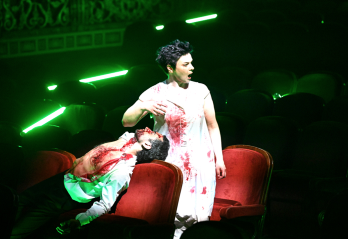 Con la misma perspectiva y los mismos elementos, se ha repuesto en el Arriaga la obra Erwartung de Schonberg que ya se representó en el mes de junio pasado. De manera que, con la única compañía del piano, colocado en medio de la butaca de patio del teatro, la soprano lituana Ausrine Stundyte volvió a cuajar un excelente trabajo artístico. Valió la pena tanto su actuación teatral deambulando por las butacas en la búsqueda de su amado, como su “recitar cantando” lleno de expresividad. El mérito de su desafío como actriz al estar rodeada por las atentas miradas de los asistentes, se equiparó con su “canto di sbalzo” tan cambiante, lleno de fuerza dramática y entrega. También resultó admirable la concentración en su personaje, sin darle descanso y siendo escrupulosa en sus movimientos en relación con el texto. Todo ello, en bien de un recitado claro y creíble. El teclado del piano a cargo de Andrej Hovrin mantuvo perfectamente el sentido de la narración y a pesar de su atonalidad musical, el buen hacer del pianista nos mantuvo inmersos en el angustioso monólogo de la soprano. La artista mostró de nuevo la corporeidad de su timbre de voz, emitida con dureza, pero a la vez poderosa en bien de un resultado de efecto dramático. En cuanto a la idea de Calixto Bieito nos atrajo el juego de luces que creó y el amplio espacio ideado para lucimiento de la soprano. En cambio, no nos sedujo su siempre utilizado muestrario de sangre, ni su visión tétrica en la búsqueda del erotismo. No hubo variación con respecto a la anterior representación y con ello volvieron a renovarse los méritos de la cantante-actriz lituana. Tras este Erwartung (La Espera) Schonbergiana y en este mismo estrilo operístico, quizás Bieito nos depare “El Angel de Fuego” de Prokofiev que esta misma soprano, tan querida por él, cantó en el Real madrileño.