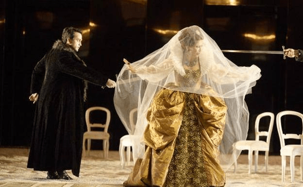 Con amplio espacio escénico, con el negro y el blanco predominando en la escenografía, el binomio Emilio Sagi-Daniel Blanco presentó en Bilbao la producción realizada para el teatro Real y el Municipal de Santiago de Chile. Ambos contribuyeron a una escueta elegancia y ambos hicieron que la esperada aria “A te o Cara” tuviera un añadido mágico al ir bajando las hermosas arañas de cristal lentamente desde lo alto al son del elegante canto del tenor Xabier Anduaga. El guipuzcoano encarnó a un Arturo Talbot valiente, entregándose cada vez más a medida que transcurría la obra y deparándonos una voz de muy bello y grato color. De este modo, al llegar al tercer acto sus logros artísticos se centraron también en el claro fraseo y en una efectista media voz aún a riego de acercarse demasiado al falsete. En el dúo “Vieni fra queste braccia” los agudos brillaron en su sitio y ya en el aria-concertante final “Credeasi misera” cantó con ardor y entrega y con amplio fiato, pero lejos de las dos notas Fa alto escritas por Bellini. En suma, una excelente recreación de un joven tenor llamado inexorablemente al éxito si su carrera discurriera sin contratiempos.