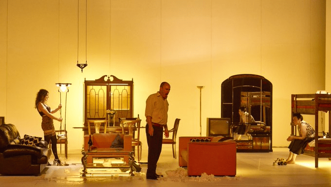 El estreno de “Orgía” basada en la obra de Pasolini de mil novecientos sesenta y ocho, la podríamos calificar como una “ópera teatral”. El común denominador de la obra radica en la declamación más que en el canto melódico y en la expresividad teatral más que en la dulzura lineal canora. Si a ello añadimos la buena dosis de histrionismo ordenado por Calixto Bieito en la gran labor profesional de los tres cantantes, el resultado desemboca en una especie de serialismo en el que se establece un orden no sólo para las diferentes alturas tonales, sino para la sucesión de las diferentes duraciones de las notas. De ahí los silencios que Héctor Parra aplica en bien de la tensión dramática en una composición musical que tiene cierta independencia con respeto al texto.